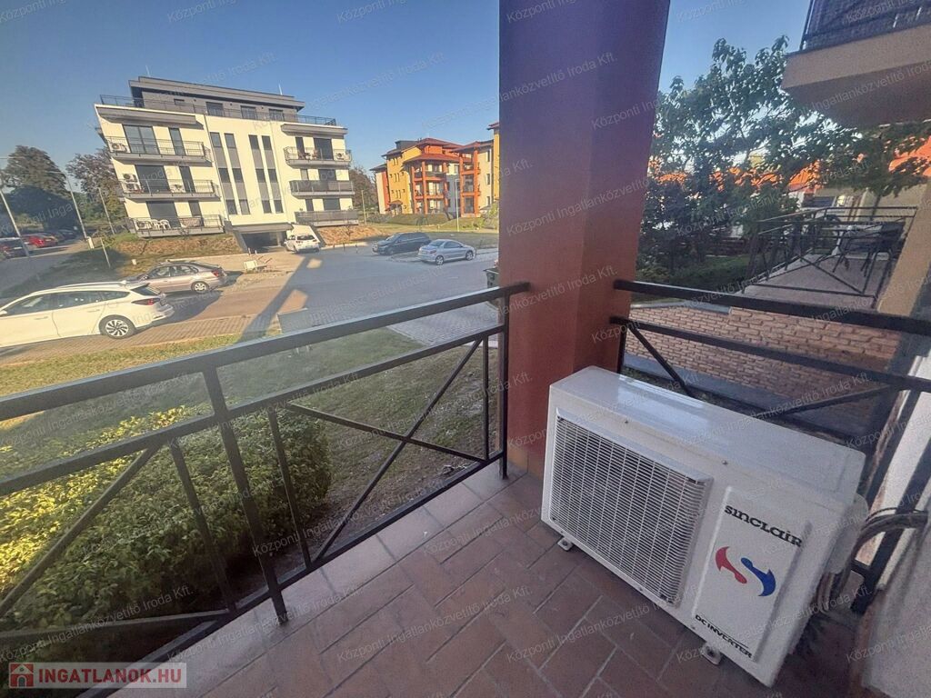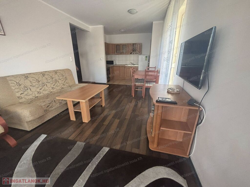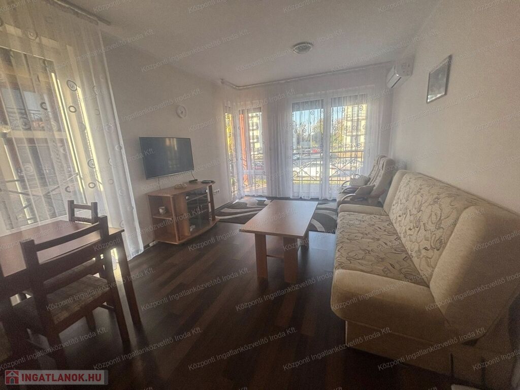 Az ingatlan jó elosztású, teljesen berendezett, bútorozott, gépesített. Helyet kapott benne amerikai konyhás nappali, 2 hálószoba, fürdőszoba, külön toalett, nagy terasz. A fürdőszobában kád és zuhanyzó is lehetőséget ad a lazulásra, felfrissülésre. A szobák laminált padlóval a többi helyiség járólappal burkolt. A nyári melegben klíma segíti a megfelelő hőmérséklet beállítását.