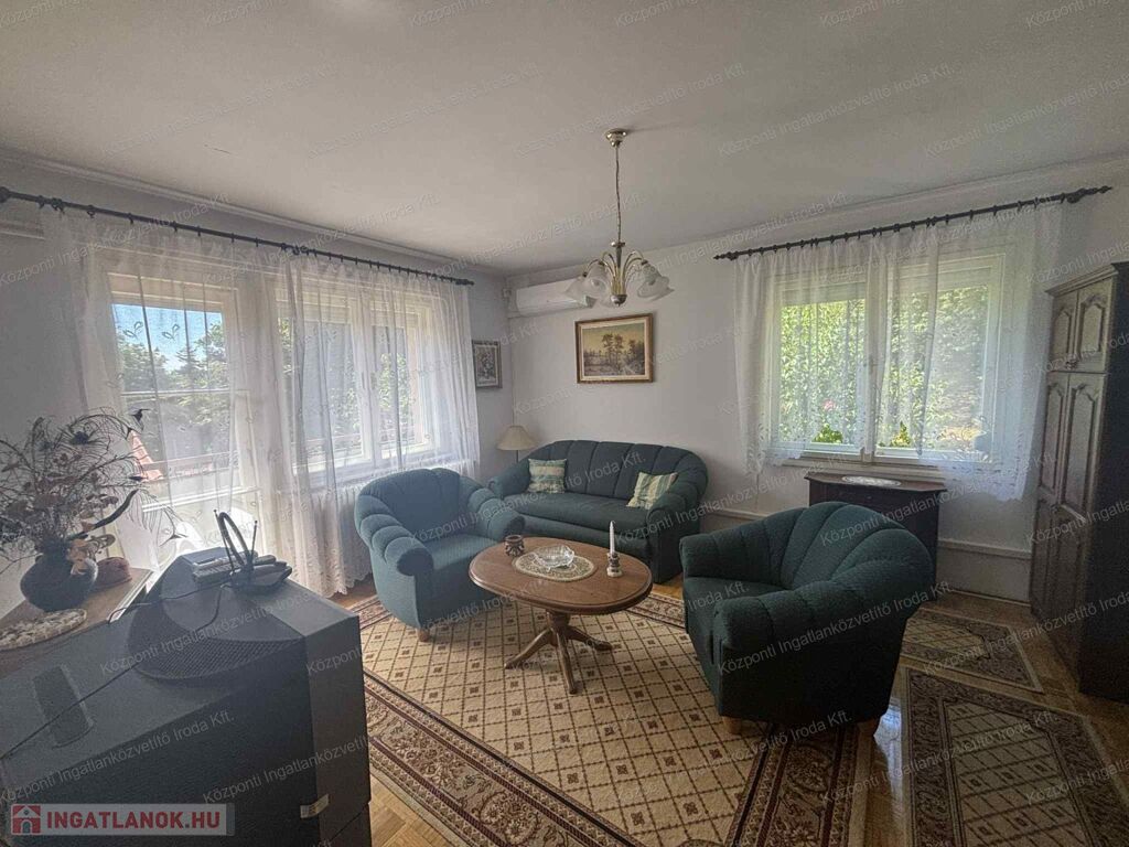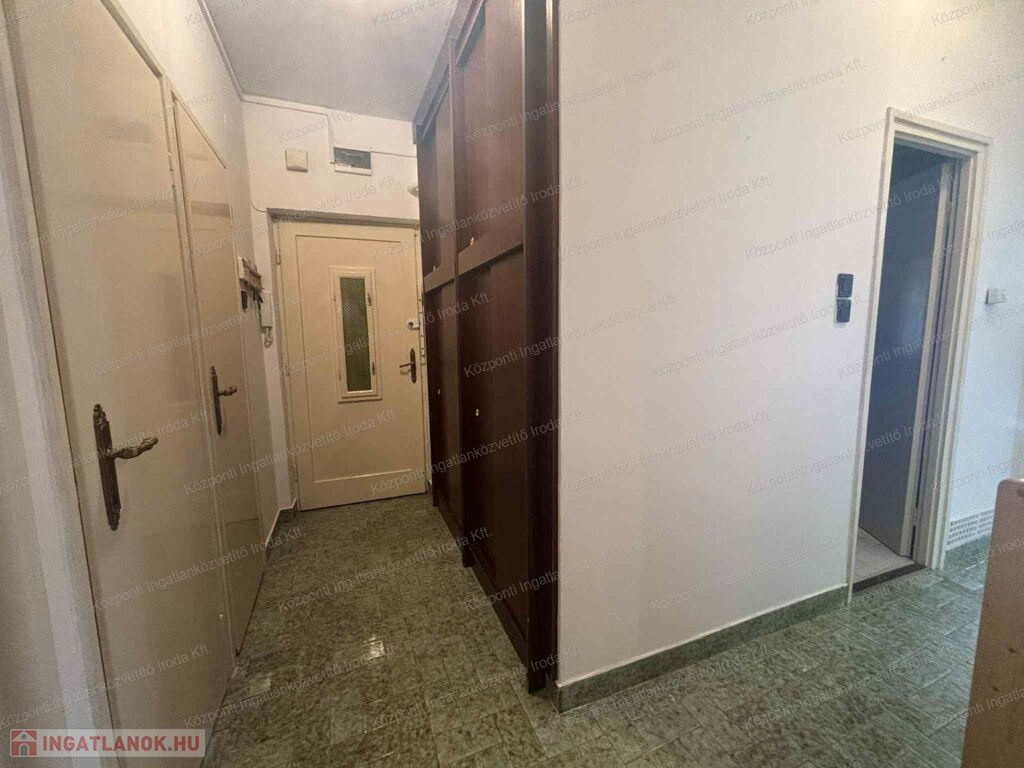 A Központi Ingatlanközvetítő Iroda kiemelt ajánlata, ez az 1. emeleti, 2 szobás, nagy erkélyes lakást egy rendezett, háromszintes, téglaépítésű társasházban. A lakás klimatizált, fűtését gázkonvektor biztosítja. Állapota átlagos, tehermentes, rövid időn belül birtokba vehető, így akár saját részre, akár befektetési célra is ideális választás lehet. A lakáshoz külön, zárható, 2 m²-es pincei tároló tartozik, valamint opcionálisan egy garázs is megvásárolható, amelynek ára 18 millió Ft.