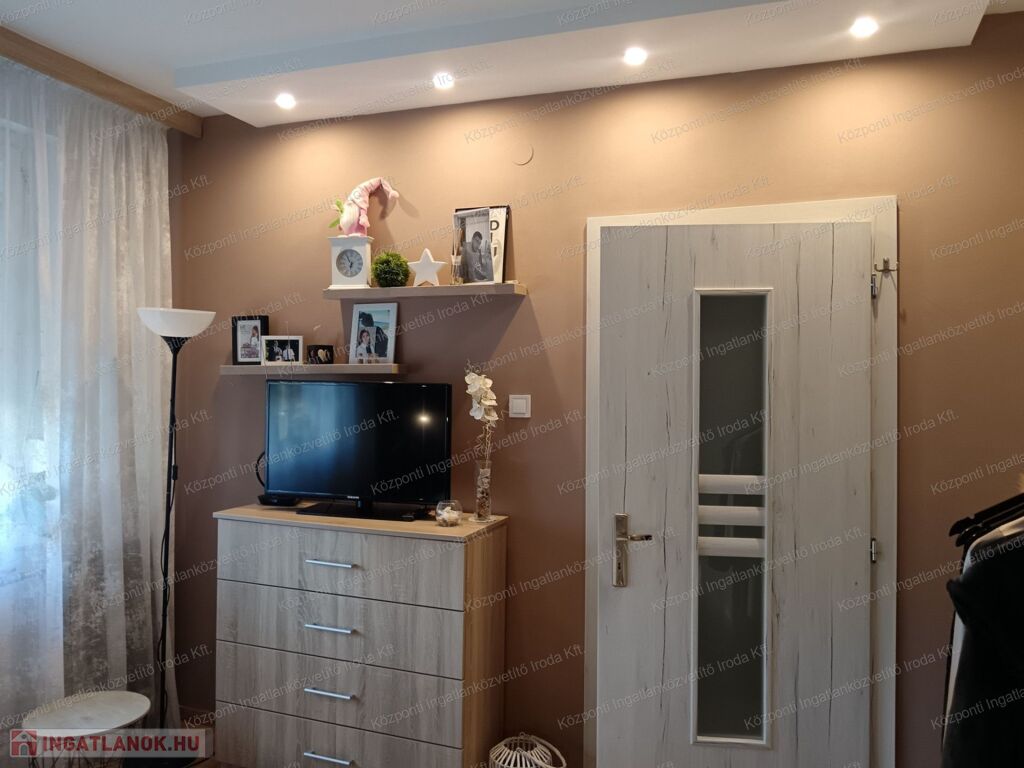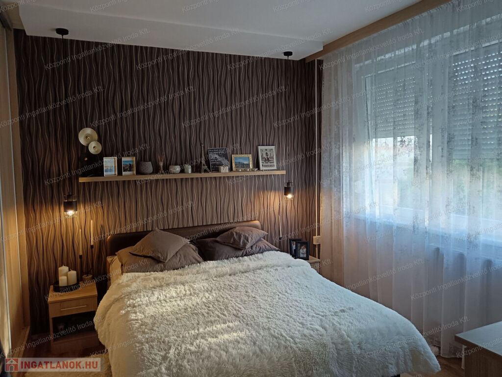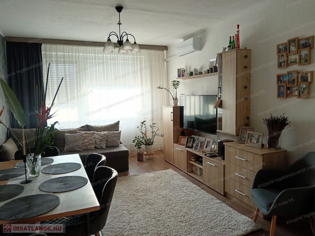 Az ingatlan egy 10 emeletes társasház 4. emeletén található, egyedileg átalakított, teljeskörűen felújított, 2 szobás, 53 m2-es. Helyet kapott benne konyha-étkező-nappali, hálószoba, kisszoba, előszoba, fürdőszoba, WC. A szobák laminált parkettával, a többi helyiség járólappal burkolt. Az otthon melegéről és a háztartási meleg vízről távhő gondoskodik, a hőleadás radiátorokkal történik. A fürdőszobában kád ad lehetőséget a felfrissülésre, lazulásra. A felújítás során cserére kerültek a víz és villanyhálózatok, korszerűsítve lett a fűtésrendszer, cserélve lettek a külső és belső nyílászárók. Az ablakok redőnnyel és szúnyoghálóval felszereltek. A megfelelő hőmérséklet beállításához klímaberendezés biztosított. További tárolásra a lépcsőházban található közös tároló biztosít helyet.