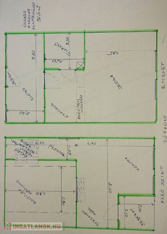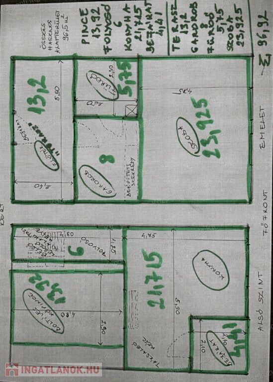 Az ingatlan összesen 2403 m² területtel rendelkezik (723 m² + 1680 m²), és egy 1991-ben épült, 3 szintes, teljes értékű pincével rendelkező, 38 m²-es ház található rajta, amely a hátsó terasszal együtt 96,5 m²-nyi használható térrel rendelkezik. A házba a villany és ivóvíz bevezetésre került, a meleg vizet villanybojler biztosítja. A földszinten konyha, étkező, folyosó, szélfogó és a borospince bejárata található, míg az emeleten egy tágas, világos szoba kapott helyet gardróbszekrényekkel és fürdőszobával. A terméskőből épült, boltíves pince kiválóan alkalmas borászkodásra vagy tárolásra.
