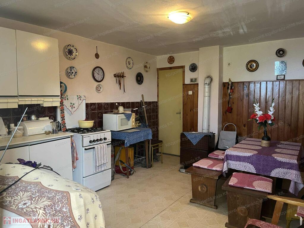 Az ingatlan 2 külön megközelíthető, egymással szembeni telekből áll, összesen 644 nm-es. A151 m2-es telken egy panel szerkezetű 2 szintes (24-24 m2) házikó áll, melynek alsó szintjén konyha és kamra található, ahonnan egy terasz nyílik, a felső szintjén előszoba, szoba és WC kapott helyet. A tetőtér tárolóként funkcionál, a ház mellett egy könnyűszerkezetes fa tároló található. Az ingatlan vezetékes vízzel, emésztővel ellátott, villanyórával felszerelt (20 amper). A kémény megépült, a fűtés jelenleg kályhával biztosított. Az épület 5 cm-es homlokzati szigetelést kapott.